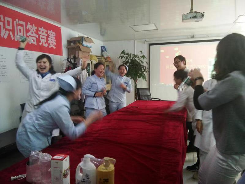 医护人员积极参与夹乒乓球、眼疾手快等活动。整场比赛既紧张激烈又趣味横生,参赛队员既相互竞争又相互合作,大家在欢声笑语中享受趣味活动带来的欢乐。